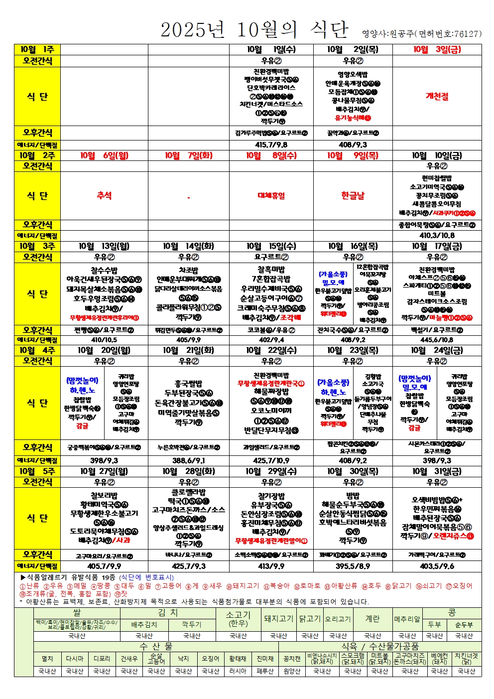 2025Çг⵵ 10¿ù ±Þ.°£½Ä ½Ä´ÜÇ¥